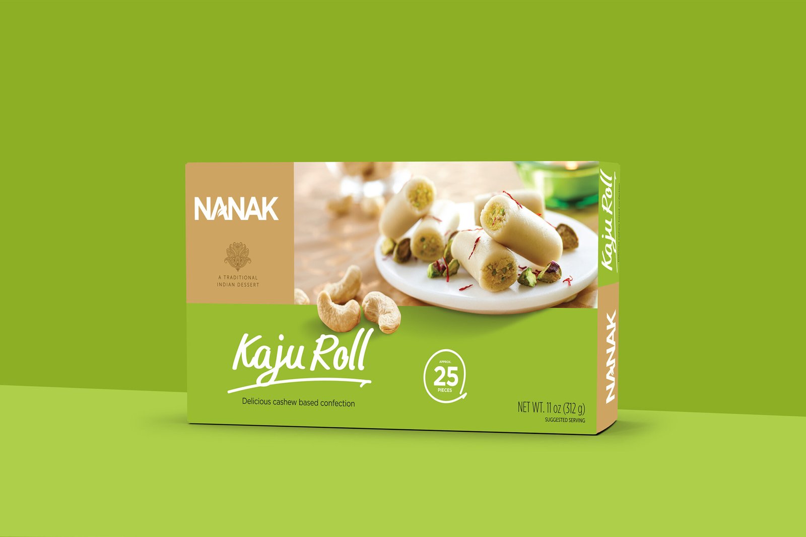 Cashew nuts, Sugar, Pistachio nuts, Glucose, Potassium sorbate (preservative), Cardamom, Saffron, Artificial flavoring, FD&C Yellow #5.