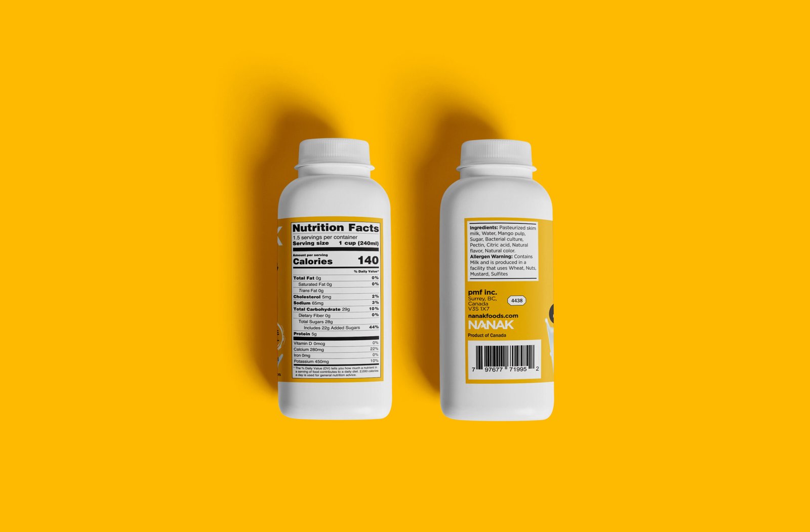 Skim Milk, Water, Mango Pulp, Sugar, Bacterial Culture, Pectin, Citric Acid, Flavoring and color