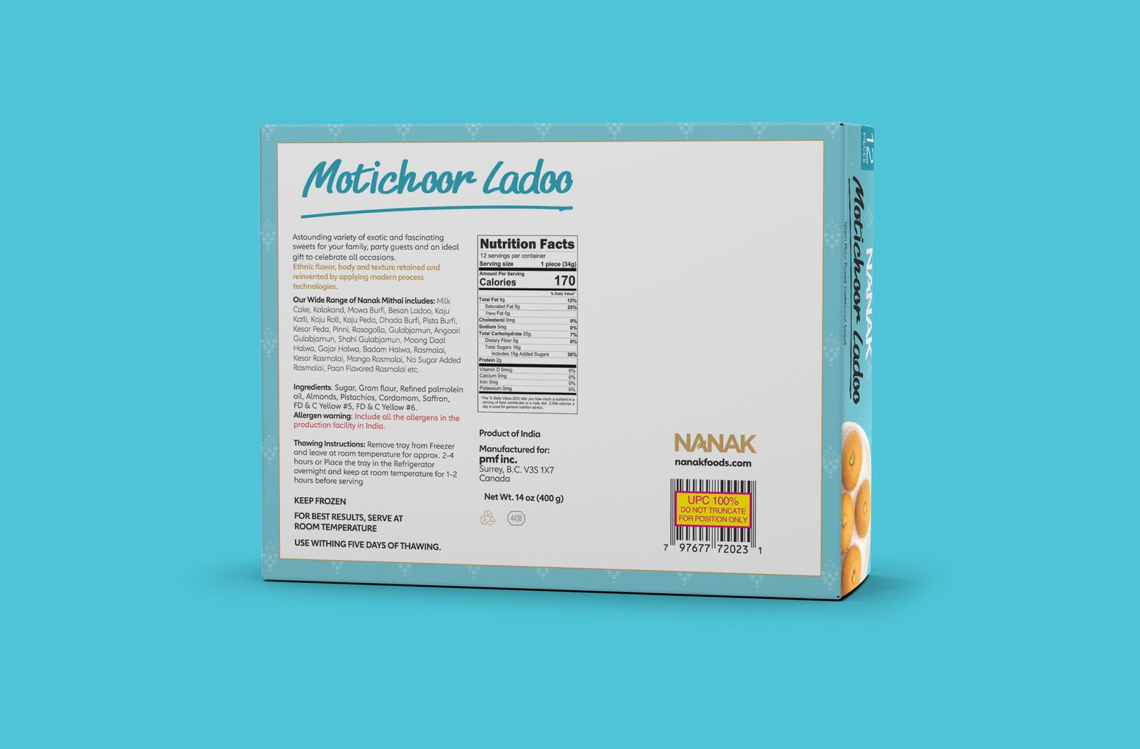 Sugar, Gram flour, Refined palmolein oil, Almonds, Pistachios, Cardamom, Saffron, FD & C Yellow #5, FD & C Yellow #6.
